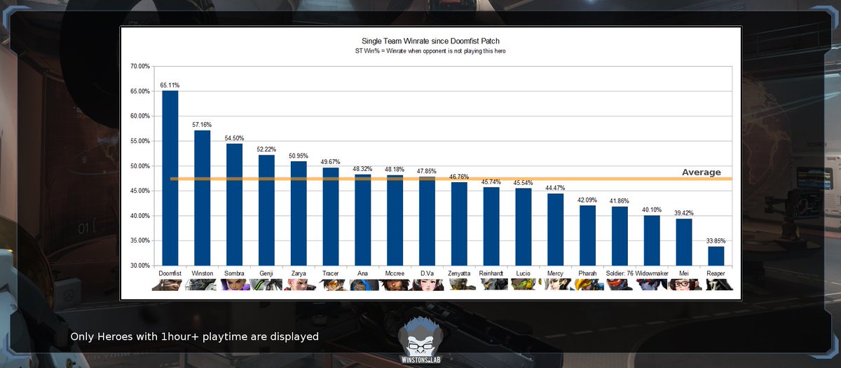 Doomfist when not playing against a Doomfist on the enemy team wins 65% of all maps. http://winstonslab.com/heroes/?dateGreater=2017-07-27&dateSmaller=&event%5B%5D=&team%5B%5D=&time=3600&maptype=&map=&roundtype=&statsBy=1&heroes= …pic.twitter.com/9yEbEyI5nY