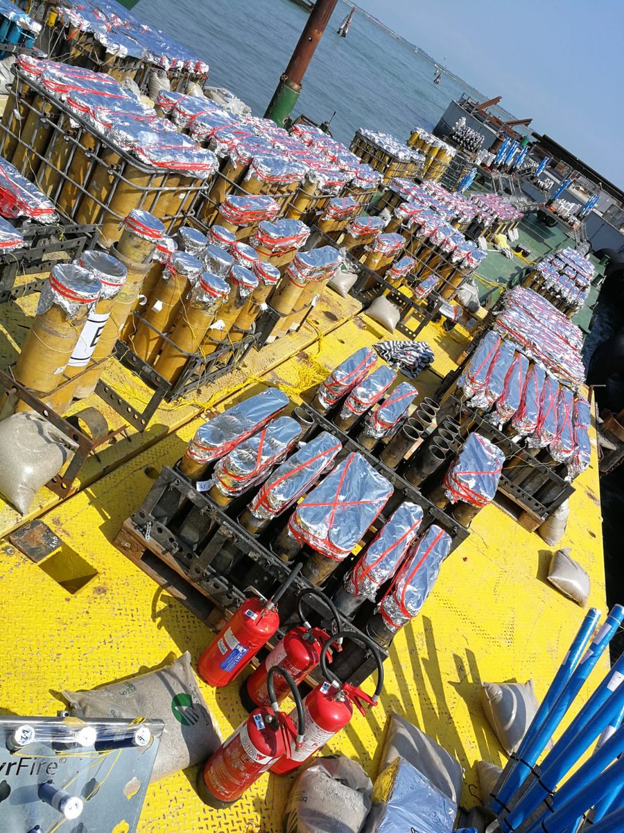 #RedentoreVenezia2018 | posizionati in Bacino di San Marco i galleggianti con i fuochi d’artificio. Lo spettacolo a tema “Le quattro stagioni - Pyroshow” è dedicato ai veneziani e a tutti i visitatori della nostra città. Buon Redentore a tutti! Spettacolo