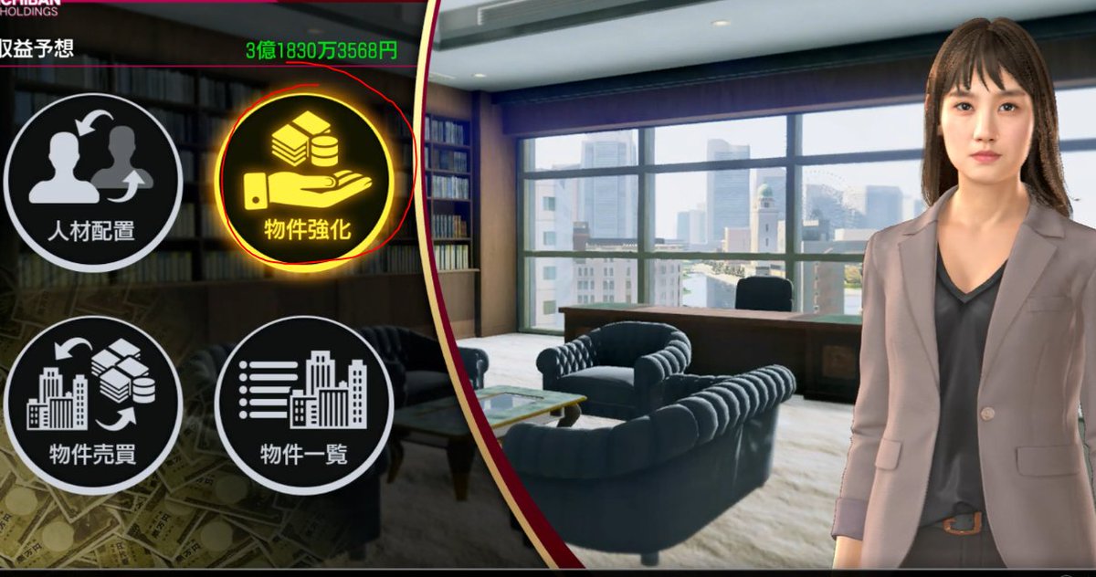 The three bars on the bottom represent quality of the business. So with this option you can spend money to work on it in case it's in the red. Top option levels up the business (gain more profit) the other 3 level up the 3 bars so you can meet the requirementspic.twitter.com/gxml1ayWuj