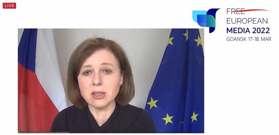Právě debatujeme o svobodě médií. Srdečně zdravím do Havlíčkova Brodu. Je zde válka a bráníme se. Zavedli jsme opatření, jak v Evropě blokovat Putinovskou propagandu (RT, Sputnik). Musíme dezinformace, jež mají za cíl rozklížit naši Unii, potírat. A podporovat