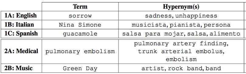 Some take-away messages from the SemEval task on Hypernym Discovery: Numbers don't lie, it is a *very* difficult task (room for improvement!); Hearst patterns still relevant; most frequent baseline hard to beat in focused domains. Paper here: http://aclweb.org/anthology/S18-1115 …pic.twitter.com/ouidUEgQPv
