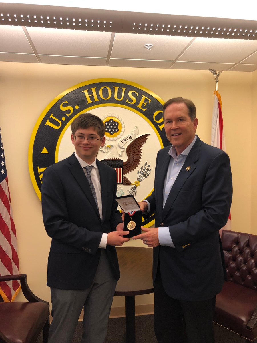 Today I presented Joshua Meighan with the Congressional Award Medal, which recognizes young people who reach challenging goals in voluntary pubic service, personal development, physical fitness, and exploration. Congratulations! #Sayfiepic.twitter.com/ECabFECxyi