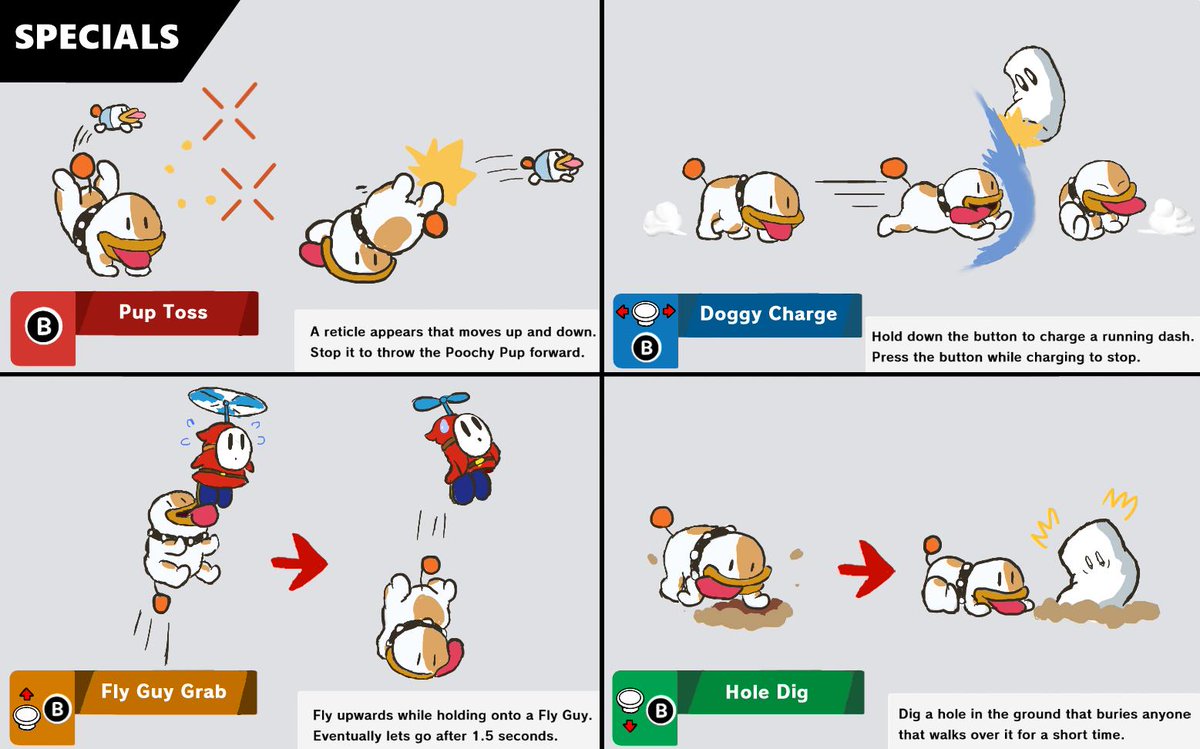 Since my Paper Mario in Smash concept stuff was so well received, I did another one, this time for Poochy, a character I unironically want. Yoshi's all alone in his franchise representation and he needs a friend out there. Full resolution gallery: https://imgur.com/gallery/MeUncWK pic.twitter.com/b6EF5WAs3H