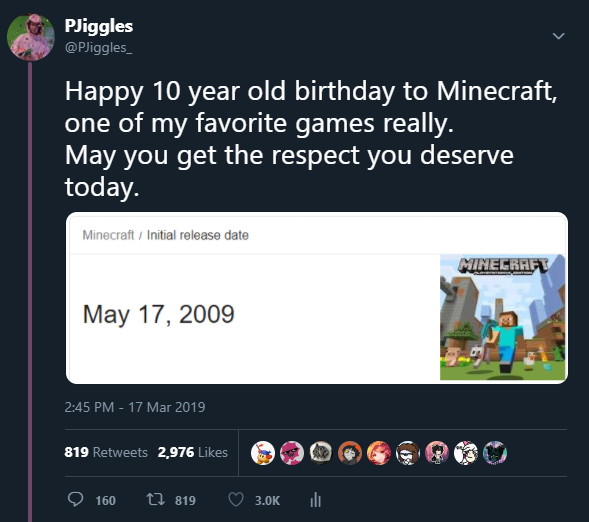 I would've made a tweet about Minecraft turning 10 today but we all know how that went last time so I think I'll pass.pic.twitter.com/iS7Fr9YQrl