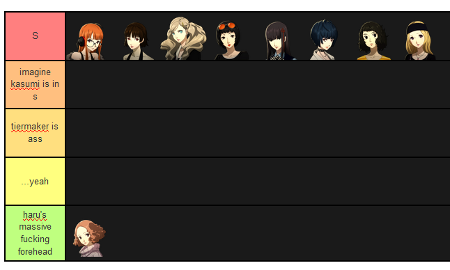btw vic while i respect that you enjoy haru as much as you do, so much to claim that she is best girl, i just must disagree futaba is best girl- actually scratch that futaba is best character