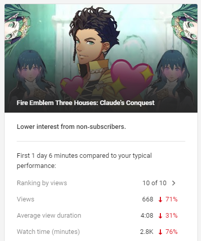It's unfortunate but I think I'm not going to try and make more Fire Emblem videos. I understand completely as for why people aren't interested in that kind of stuff from me but I'm at least glad I tried to make content for a game I really like.pic.twitter.com/n4VhvuRtp3
