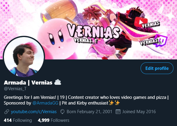 Greetings for I am Vernias! | 19 | Content creator who loves video games and pizza | Sponsored by @ArmadaGG | Pit and Kirby enthusiast✨✨ | PFP by @milkche_