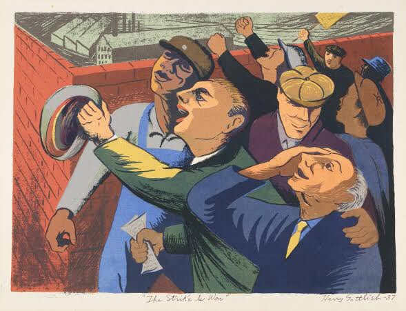 @artforanarchy: '“The strike is won” (1937) by Harry Gottlieb (1895–1992). Sreenprint on cream wove paper.#art#anarchy#strike#print#harrygottlieb ' pic.twitter.com/UFDHn2E9k7, see more http://tweetedtimes.com/v/280?s=tnp