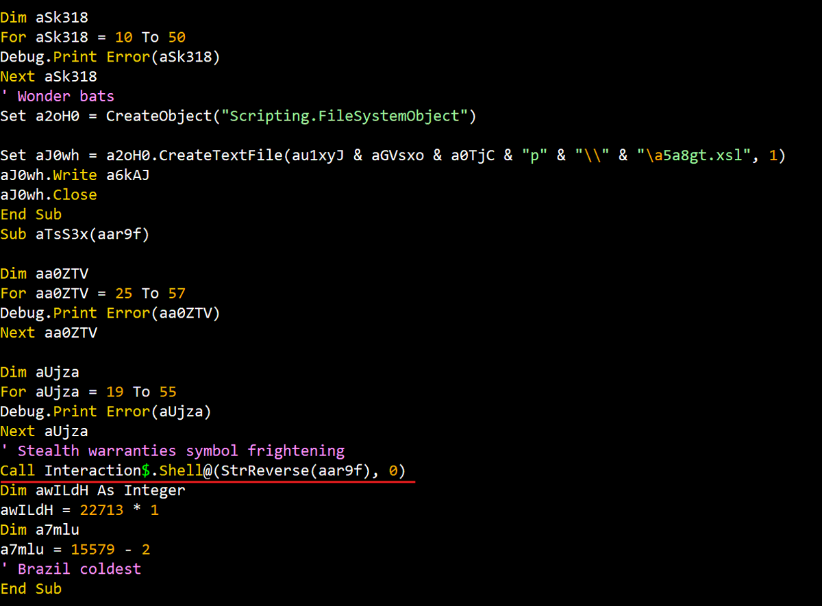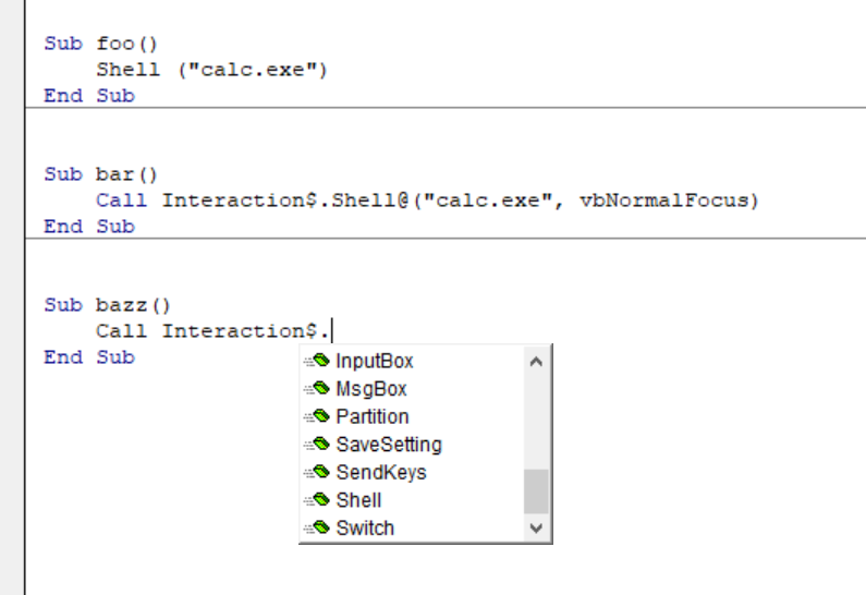If you study maldocs you know the Shell() function. Did you know about Interaction$.Shell@()? This malware does: