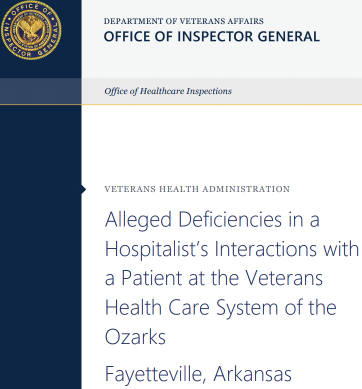 We reviewed alleged difficiencies in a doctor's interactions with a veteran and the veteran's family at the Fayetteville, Arkansas VA Medical Center. http://ow.ly/lU9q50y2gMW pic.twitter.com/NzOJ2RovlM
