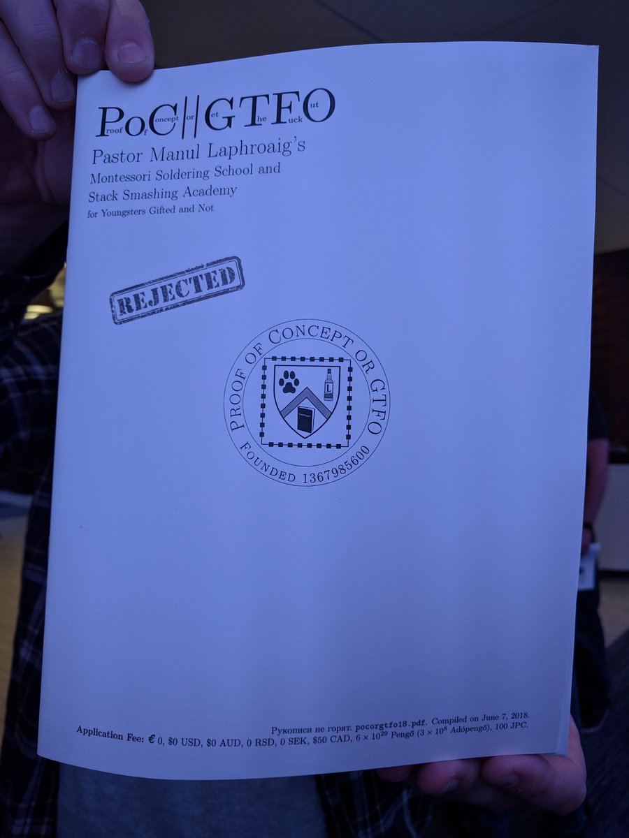 The Shabb@Con fundraiser was just updated with a very special perk: an exclusive Shabb@Con version of PoC||GTFO Volume 2. Get yours now!http://igg.me/at/shabbatcon