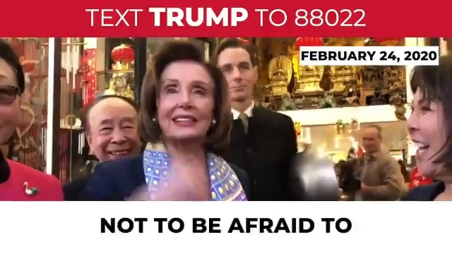 On February 24 there were 15 cases of the coronavirus confirmed in the U.S. Nancy Pelosi went to Chinatown & urged Americans to shop & eat there. "Everything is fine," she said. "All is well." "Come to Chinatown... We just want everybody not to be afraid to come to Chinatown." pic.twitter.com/SI9EELciYx