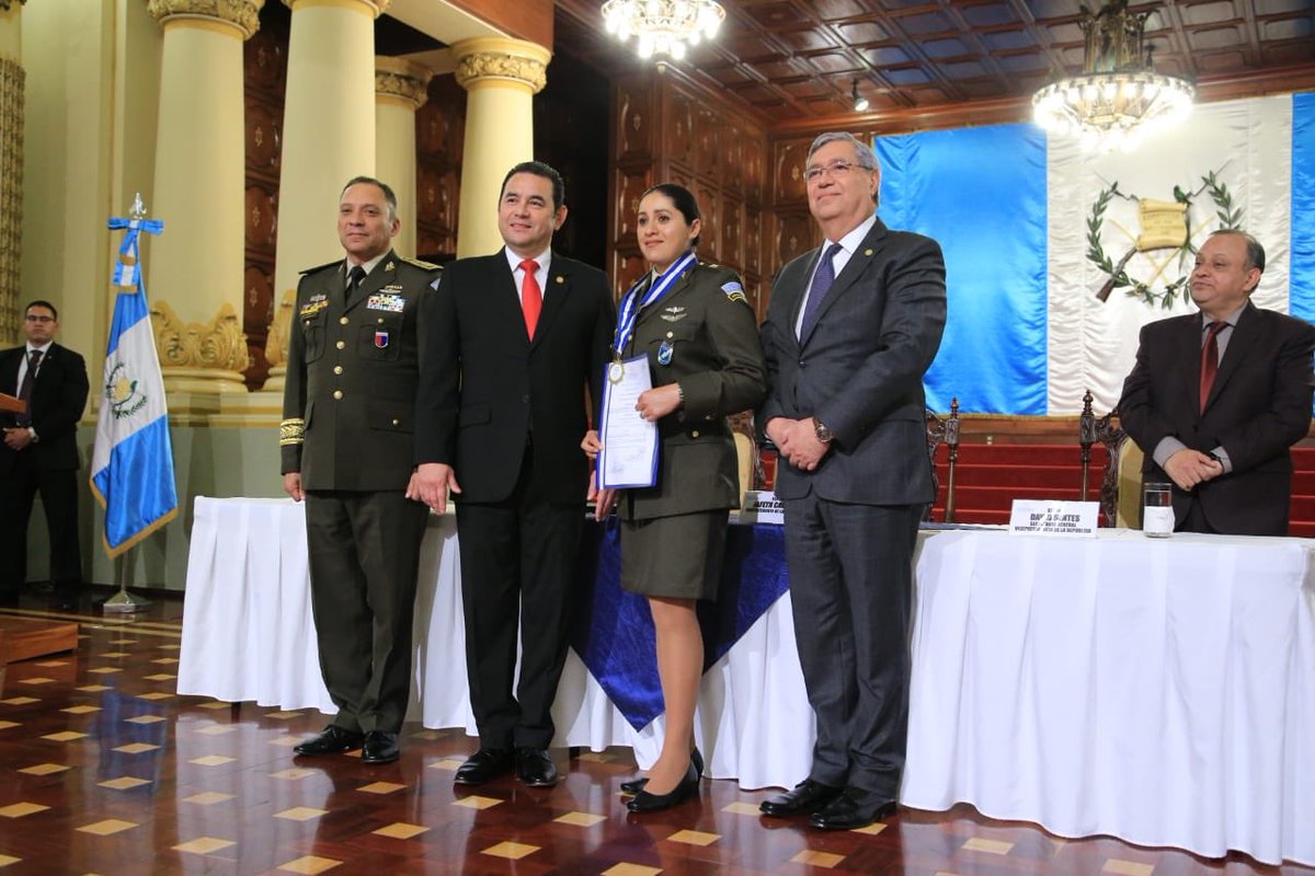 Presidente @jimmymoralesgt junto al vicepresidente @drjafethcabrera entregan la Orden Vicepresidencial a oficiales del @Ejercito_GT asignados a la Presidencia y Vicepresidencia de la República.pic.twitter.com/qBkAwTSjBF