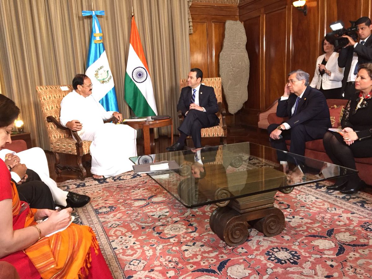 El vicepresidente @drjafethcabrera participó en el saludo oficial del vicepresidente de India, Venkaiah Naidu, a los miembros del Ejecutivo, durante su corta estadía en Guatemala.pic.twitter.com/XjktpoFY6g