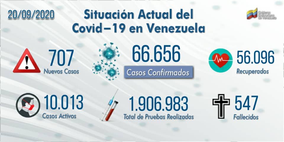 #DATO || Así se encuentra la situación actual del#COVIDー19 en Venezuela, este domingo#20Sep de 2020.pic.twitter.com/YkIvz505kP