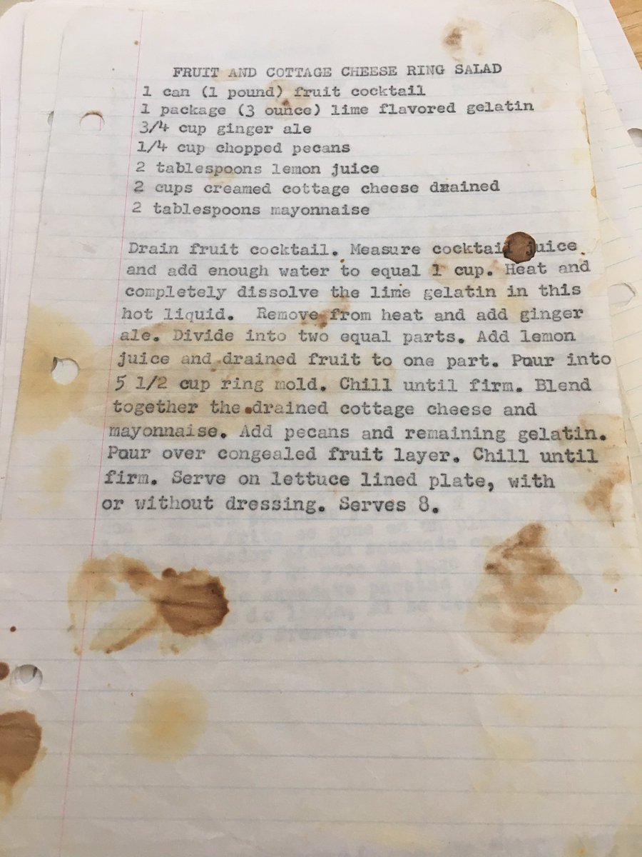 Found recipes my great-aunt legit did on a typewriter (1970ish?) so future generations could enjoy the awesomeness. More stains = more popular. This was by far the most popular. I can’t help but feel that