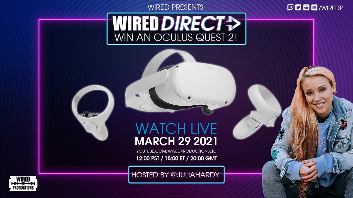#WIN an#OculusQuest2! RT, Follow and set a reminder for#WiredDirect via http://youtu.be/7_epLZI1AiA We'll announce the winner after the show ends on Monday!#Competition#PlayForReal#OculusQuest#VRpic.twitter.com/bllw30yQd7