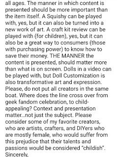 @TeamYouTube Please don’t lump all creators who work with toys and children friendly content as geared towards kids and demonetize them. This is sexist and will take away almost all the creators I’m interested in watching. Longer letter below. Thankspic.twitter.com/kqOMDMlwAv