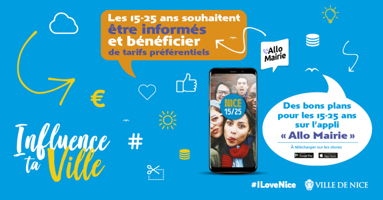 #Nice06 ! Depuis l’application Allo Mairie sur smartphone, les jeunes Niçois pourront retrouver toute une série de bons plans et services dédiés !#ILoveNice