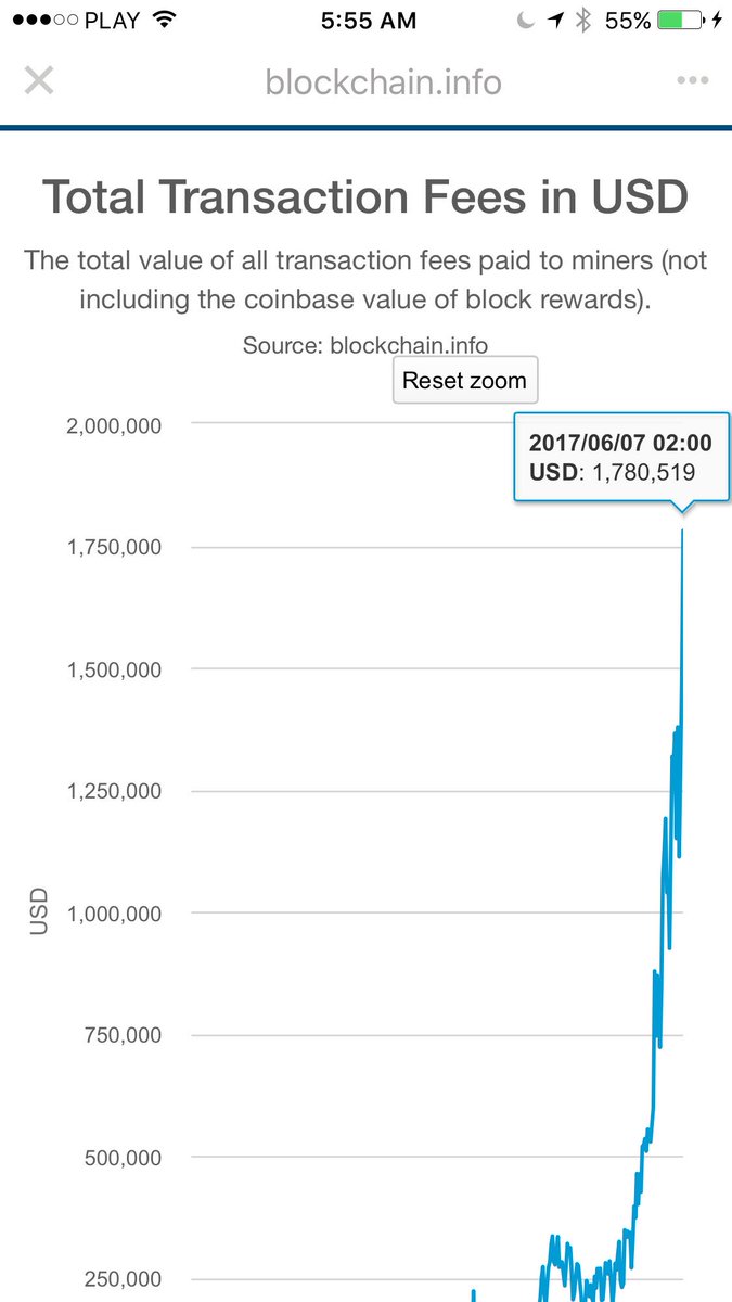 Total Bitcoin fees spiked to new all-time high of $1.7 million yesterday. 6 months ago fees were below $100k/day.pic.twitter.com/pumLIF4Hik