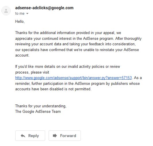 2/X Needless to say, I have never bought clicks or done anything else untoward on my account, but Google denied my appeal at the time, and I just let the account sit there. But I figured, it's been a few years and maybe I can get the account reinstated.
