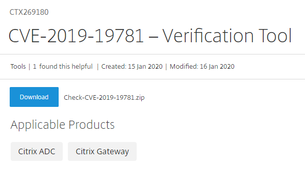 #Citrix's CVE-2019-19781 Verification Tool < requires Python https://support.citrix.com/article/CTX269180 …pic.twitter.com/dQgJvVKPlR