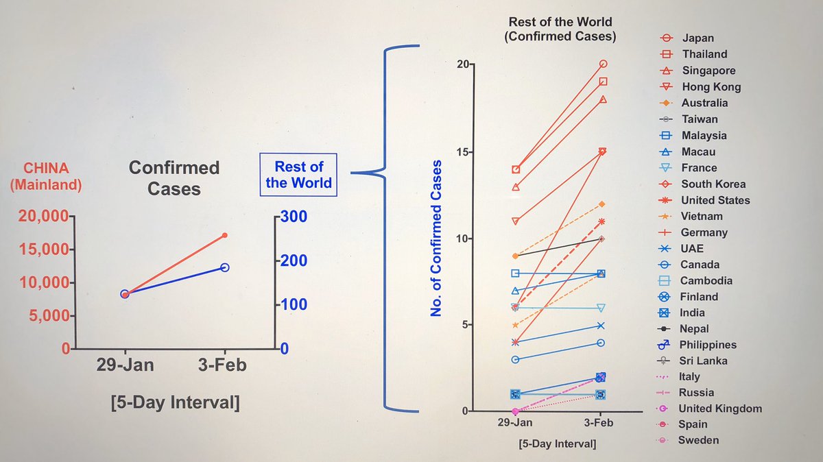 Nice explanatory tweet! Such uncertainty is intrinsic to modeling trends in disease outbreaks when there is so much unknown. If one goes back to numbers predicted ~12days ago to see how numbers match up Feb 4 (~14 days), we should be able to constraint some parameters?