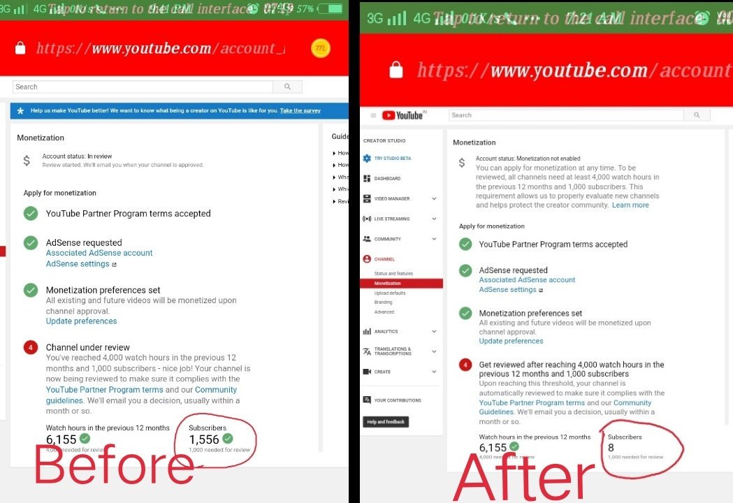 @YTCreators @TeamYouTube Dear sir, My name is Vishal kumar Gupta My channel name is Guptajii Tips https://www.youtube.com/channel/UCx-Y_l6WPQ9N3M5zkfwBr4A … Yesterday morning i see my channel subscriber is 1556 but at night only 8 What is the reason behind it please reverse my channel 's subscriber.pic.twitter.com/au7XnrC5qE