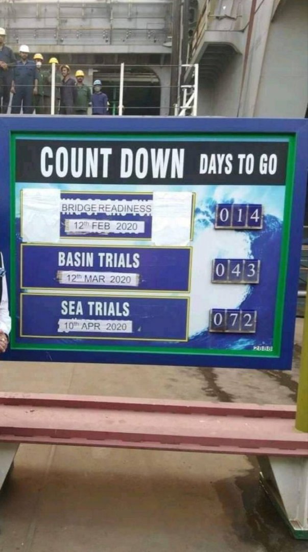 Finally some clear images from the INS Vikrant (IAC-1) at Cochin Shipyard dated 28th January ... plus an updated schedule for the sea trails. (Images via Berserk/SDF)pic.twitter.com/gVBVBsPHgI