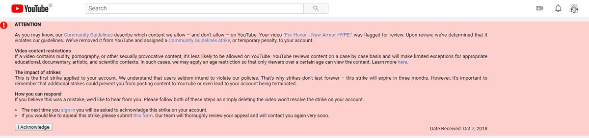 well im not even surprised. but the thing that REALLY grinds me is that why 1 week later after the video goes public?! wheres the warning? wheres that manual review that you always slap upon my hundreds of vids when unlisted? @TeamYouTube ? hello??!pic.twitter.com/95cpCO11Zp
