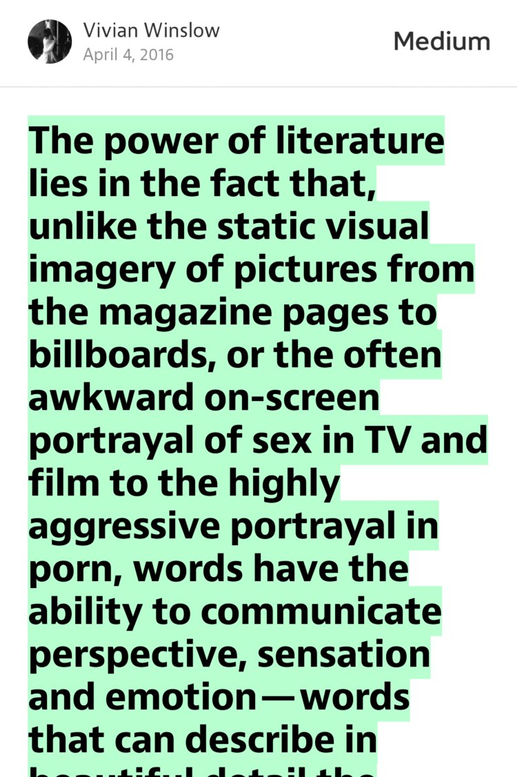 #sex“The power of literature lies in the fact that, unlike the static visual…” —@VivWinslow https://medium.com/@VivWinslow/eating-the-forbidden-fruit-why-we-need-more-sex-in-literature-d73bbcc2c6f2#---0-534.e708rti4q …pic.twitter.com/MSYrsM4gdg