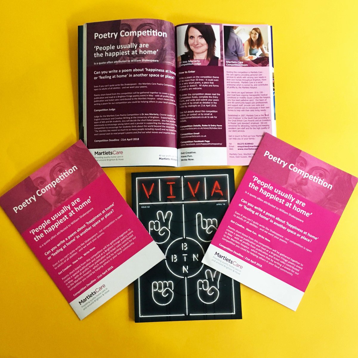 Martlets Care are looking for poetry competition entrants! Short-listed poems will be gathered to create a publication to be read at Brighton Fringe, with all profits to Martlets Hospice. Deadline 21st April. More details here: http://martletscare.co.uk/news/26/index.html …