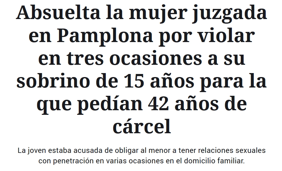 ¿Diferencia entre los casos? La perspectiva de género. Está probado que la mujer mantuvo relaciones sexuales con un menor con cuya edad es ilegal. Absuelta