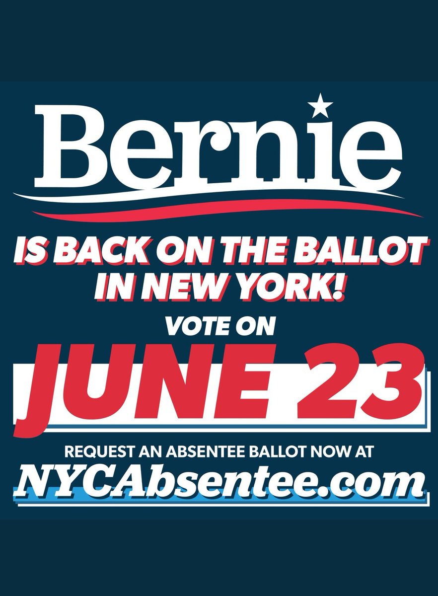 @BernieSanders and@VoteAshcraft in the upcoming#NYPrimary.#BernieOnTheBallot#UnsuspendBernie Order your ballot:https://nycabsentee.com/ pic.twitter.com/uD7Y4Ij5L2