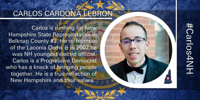 I've met a lot of candidates from across the country, and one repeatedly stands out for his kindness and selfless determination to help others. Belknap County would be lucky to have @NhCardona603 fighting for them. #Carlos4NHpic.twitter.com/WWhX0a0tNI