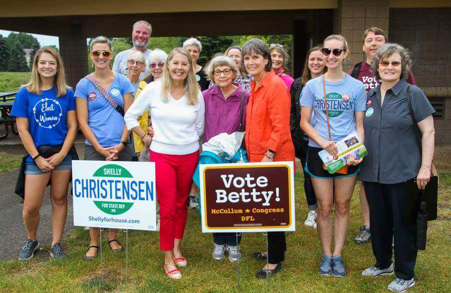 Betty was out door knocking with @shellyforhouse in Oak Park Heights and we were joined by a great group of volunteers! #VoteBetty #DFL