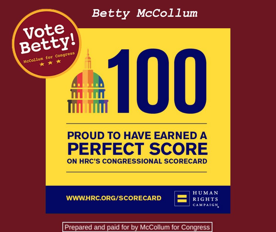 Betty is proud to have once again earned a perfect Congressional rating from the Human Rights Campaign for her continued work to advance the rights of LGBTQ people and families.pic.twitter.com/c9BTJzlRok