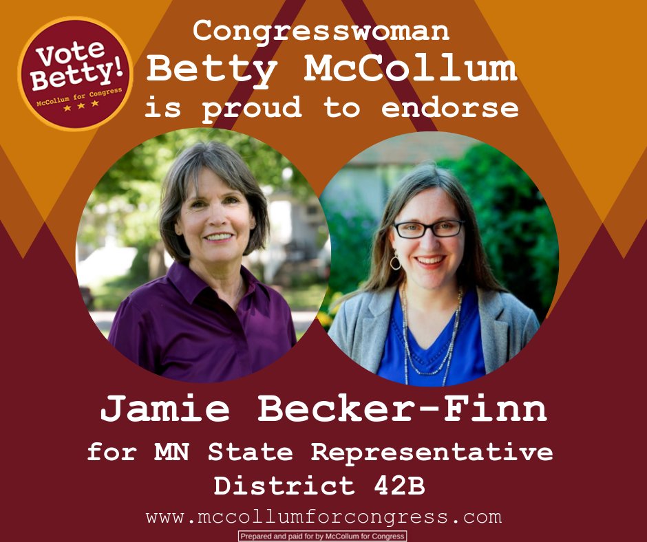 Congresswoman Betty McCollum is proud to endorse @jbeckerfinn for MN State Representative for District 42B! #mnleg #dflpic.twitter.com/OnZDh4C378