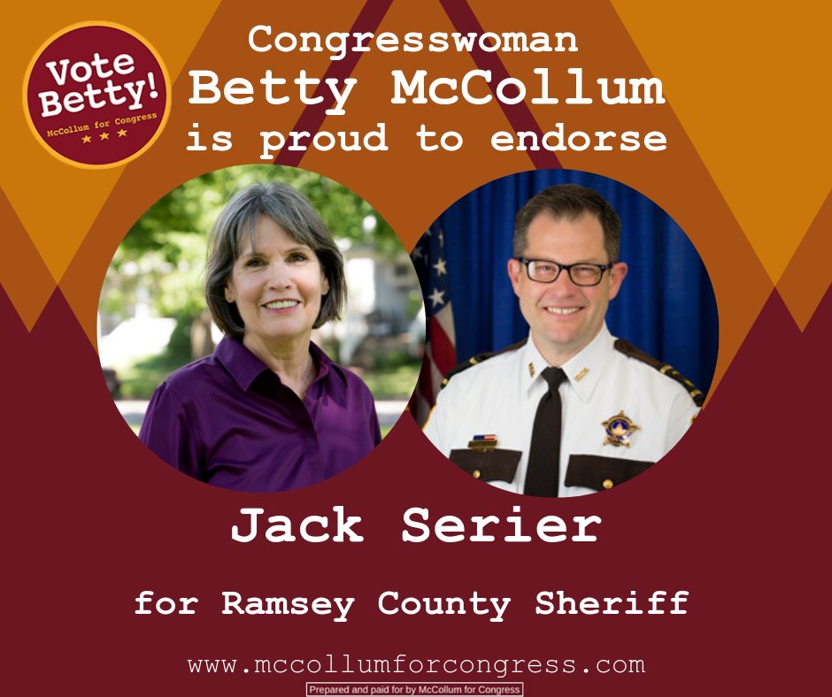 Congresswoman Betty McCollum proudly endorses @JackSerier for Ramsey County Sheriff!pic.twitter.com/5LluMePJ6z