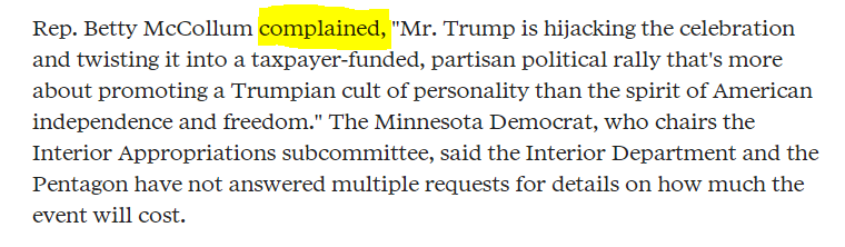 Hey @StarTribune via @AP: it's not a "complaint" when Betty has valid oversight questions as Chair of the House Interior-Environment Appropriations Committee. We're talking about a taxpayer-funded political rally on federal land. She's doing her job.pic.twitter.com/WUVopYTNB4