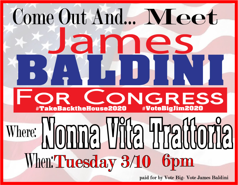 UPCOMING EVENTS! 😎WE have an event at Nonna Vita in Hamburg (Across from 7-11) Bring someone with you! Let's have a Great Time! - http://www.VoteBigJim.com  #VoteBigJim2020 #LeadRight https://mailchi.mp/jamesbaldiniforcongress.com/week_of_3-8-upcoming-events …pic.twitter.com/CL82gfMO8s