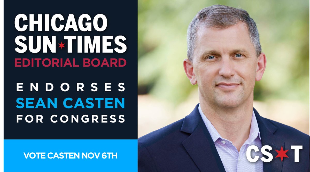 Support for SEAN CASTEN continually climbs, And now he’s endorsed by the Chicago Sun Times! They praise his accessibility As well as his expertility. Blown off by Pete Roskam, To them rather clodsome, SEAN’s their man to fill the bill. Win this election he surely will!