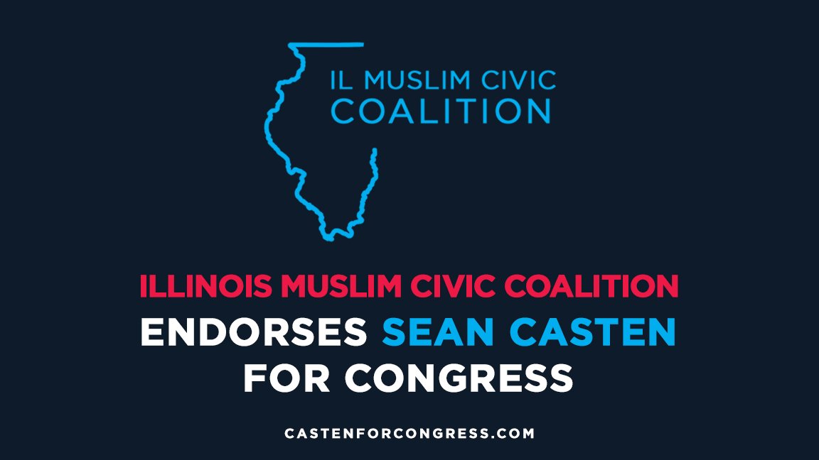 Thank you Illinois Muslim Civic Coalition for your endorsement of @SeanCasten. IMCC is dedicated to electing candidates with a commitment to improving our healthcare & education system, combatting Islamophobia, & President Trump's #MuslimBan, & working to #EndGunViolence.pic.twitter.com/31BncmWU7G