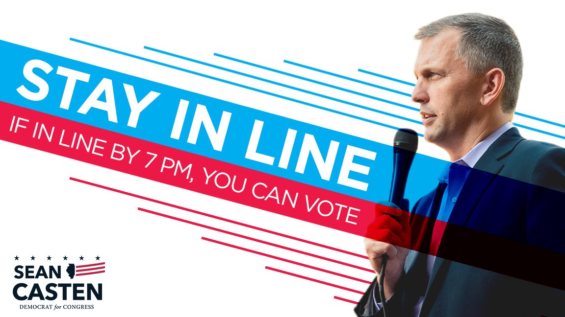 If you are in line by 7:00pm you MUST be allowed to vote! Every vote counts so please stay in line. If you have any issues casting your ballot, please call our election protection hotline at 833-868-3718 #ElectionDay #IL06 #FlipThe6thpic.twitter.com/WpFc8HJKxF