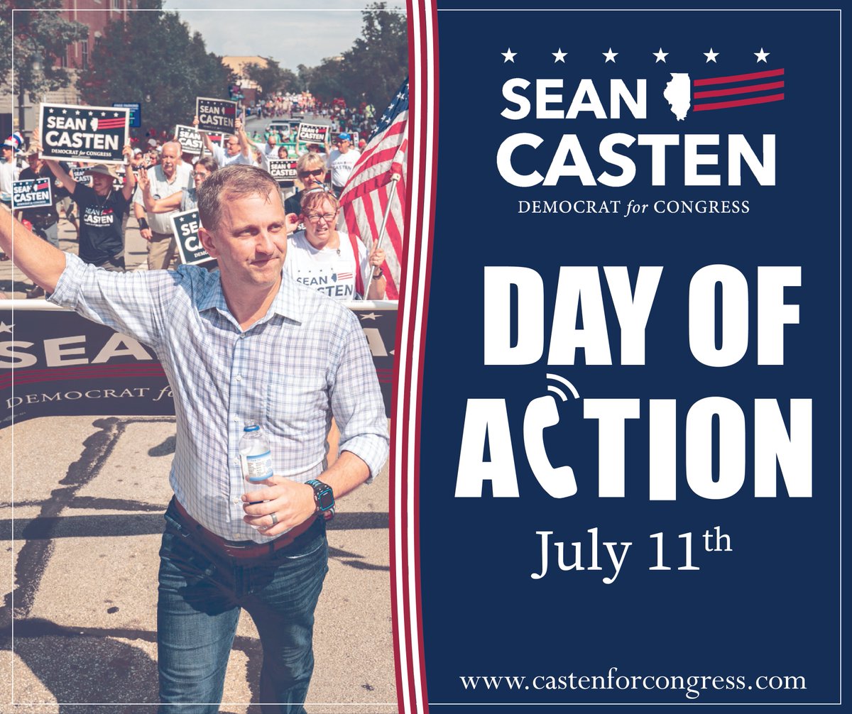 Join Team Casten's virtual phone banking Day of Action on Saturday, July 11 from 9:45 a.m. - noon. Alone but together, we'll call voters to confirm their support for @SeanCasten. Sean will kickoff the event and make calls, too! Sign up here: https://bit.ly/31ui10J pic.twitter.com/iXnhunfK3B