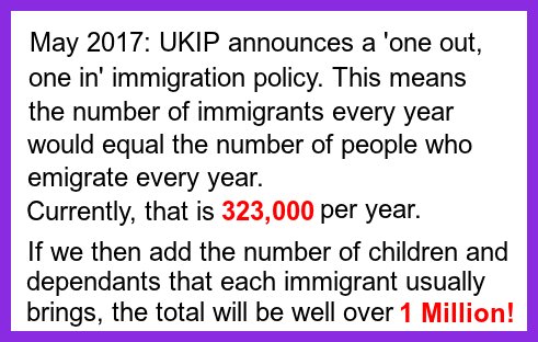 #GE2017 UKIP 'one-out, one-in' immigration policy will INCREASE immigration. There's no point in voting UKIP anymore. Vote @bnppic.twitter.com/HW6bfbHoqi