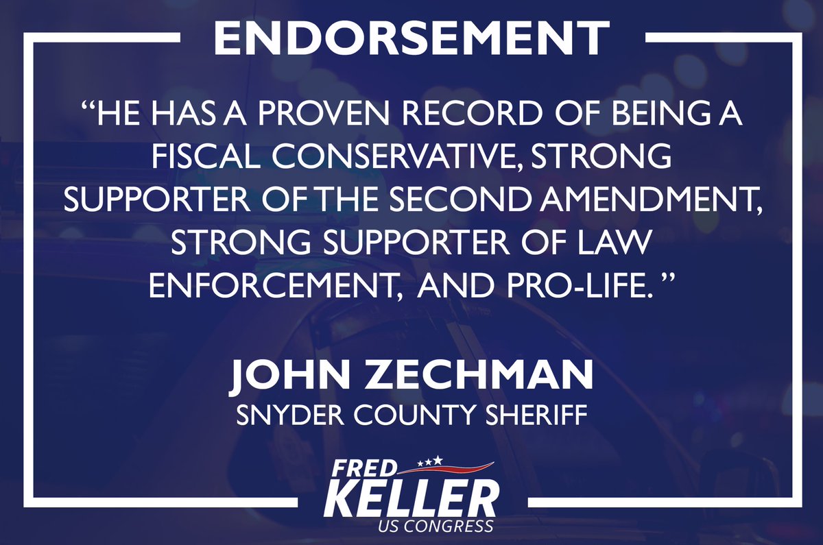 Honored to be endorsed by Snyder County Sheriff John Zechman! #TeamKellerpic.twitter.com/wIWrER2JYJ