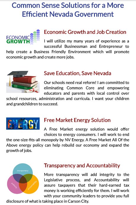 Common Sense Solutions for a more Efficient Nevada Government.