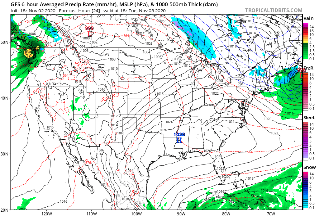With exception of a few snow flurries in Vermont and a bit of light rain in Pacific Northwest, weather on Election Day 2020 tomorrow will be notably calm & mild across United States. That's saying something following a long stretch of wildfires, hurricanes, and record heat.#VOTE pic.twitter.com/aaKSjzGqpz