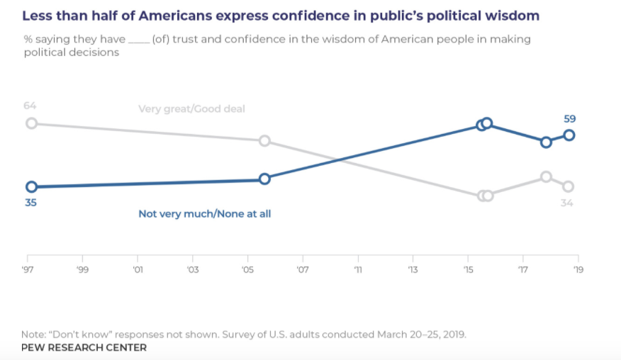 % of Americans who say they have a lot of trust in the wisdom of the American people to make political decisions